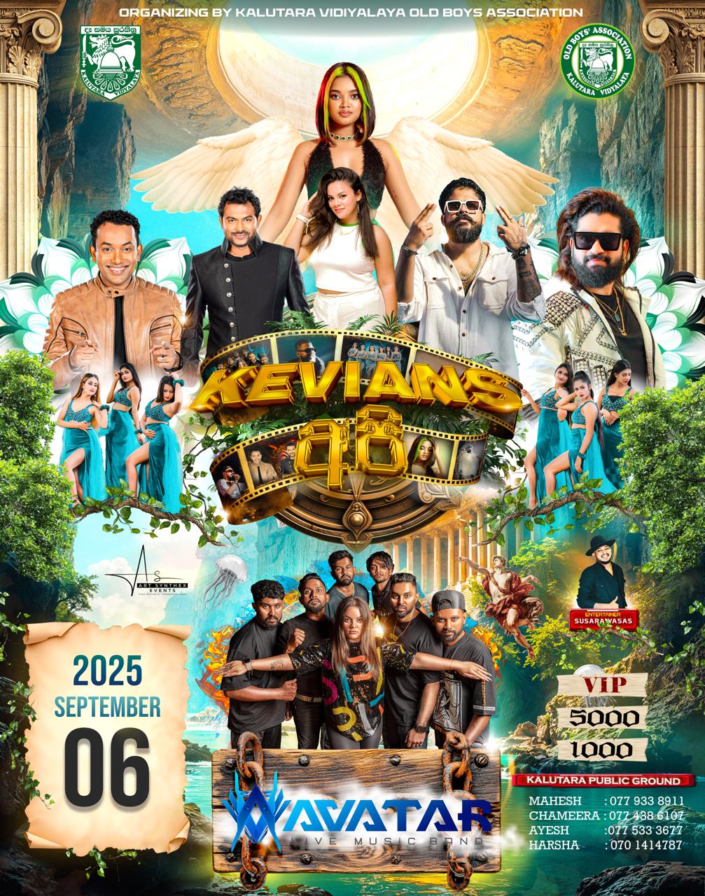 KEVIANS Api Music Concert Organized by : Kalutara Vidyalaya Old Boys Association Music by : AVATAR Live Band 06 September 2025 Kalutara Public Ground Tickets: VIP / Rs.5000 / Rs.1000